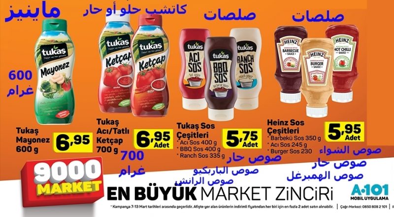 في اليوزبير a101 كاتشب وماينيز وأصناف صلصات رائعة ومنوعة بسعر مناسب … العرض مستمر حتى 13 آذار