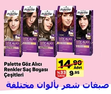 الوصف : ثلاث منتجات بتخفيض يزيد عن 30% وبأكثر من 5 ليرات ليصبح سعرها 10 ليرة شملت معجون أسنان من سجنال وصابون حمام أربع ألواح بوزن 200 غ لكل لوح وصبغات شعر بألوان مختلفة من ماركة palette
