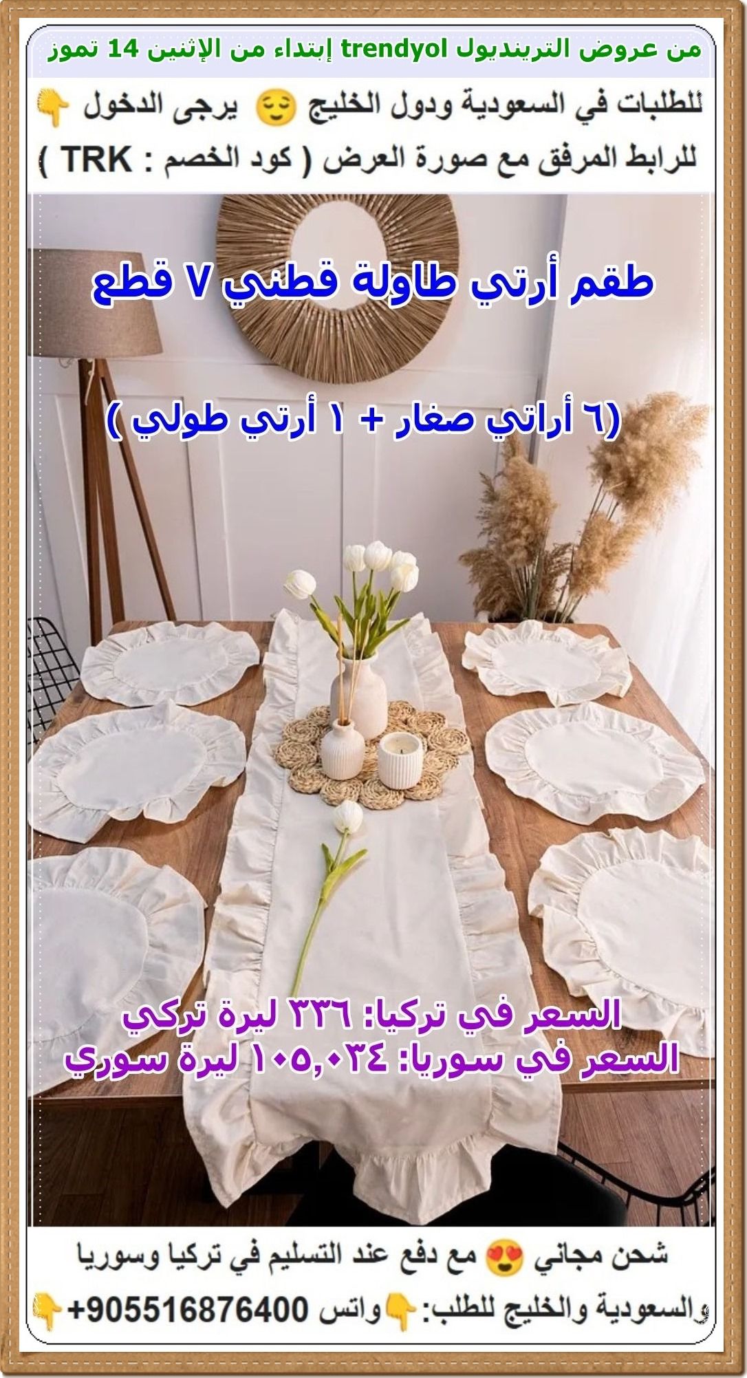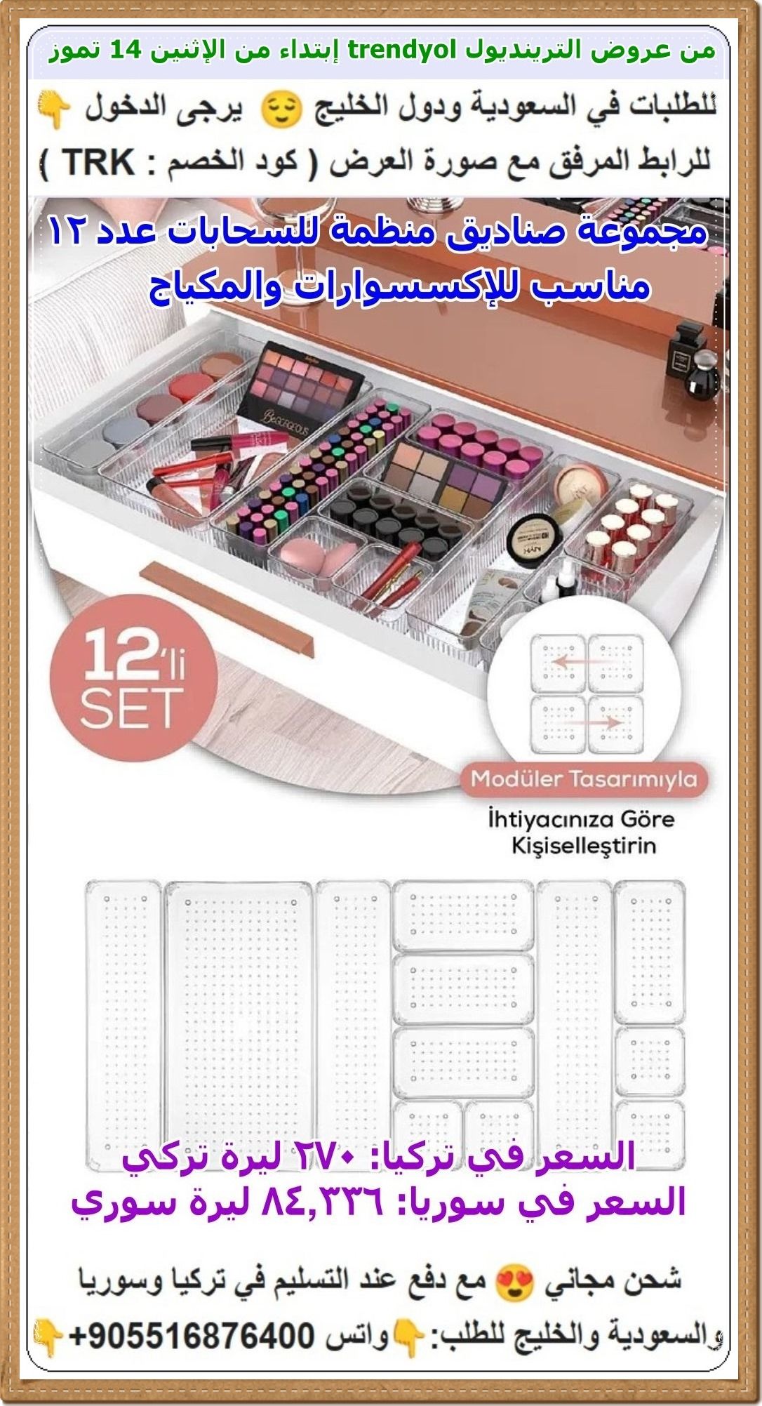 يمكنكم طلب العروض من خلال التواصل معنا على الوتس مع شحن مجاني 😍 وميزة دفع ثمن المشتريات عند الباب في تركيا أوعند الإستلام في أقرب فرع شحن في محافظتكم في سوريا بشرط أن تتجاوز مشترياتكم قيمة 950 ليرة تركية أو ما يعادلها بالليرة السورية … رقم المنصة للتواصل على الوتس 👈 00905516876400
